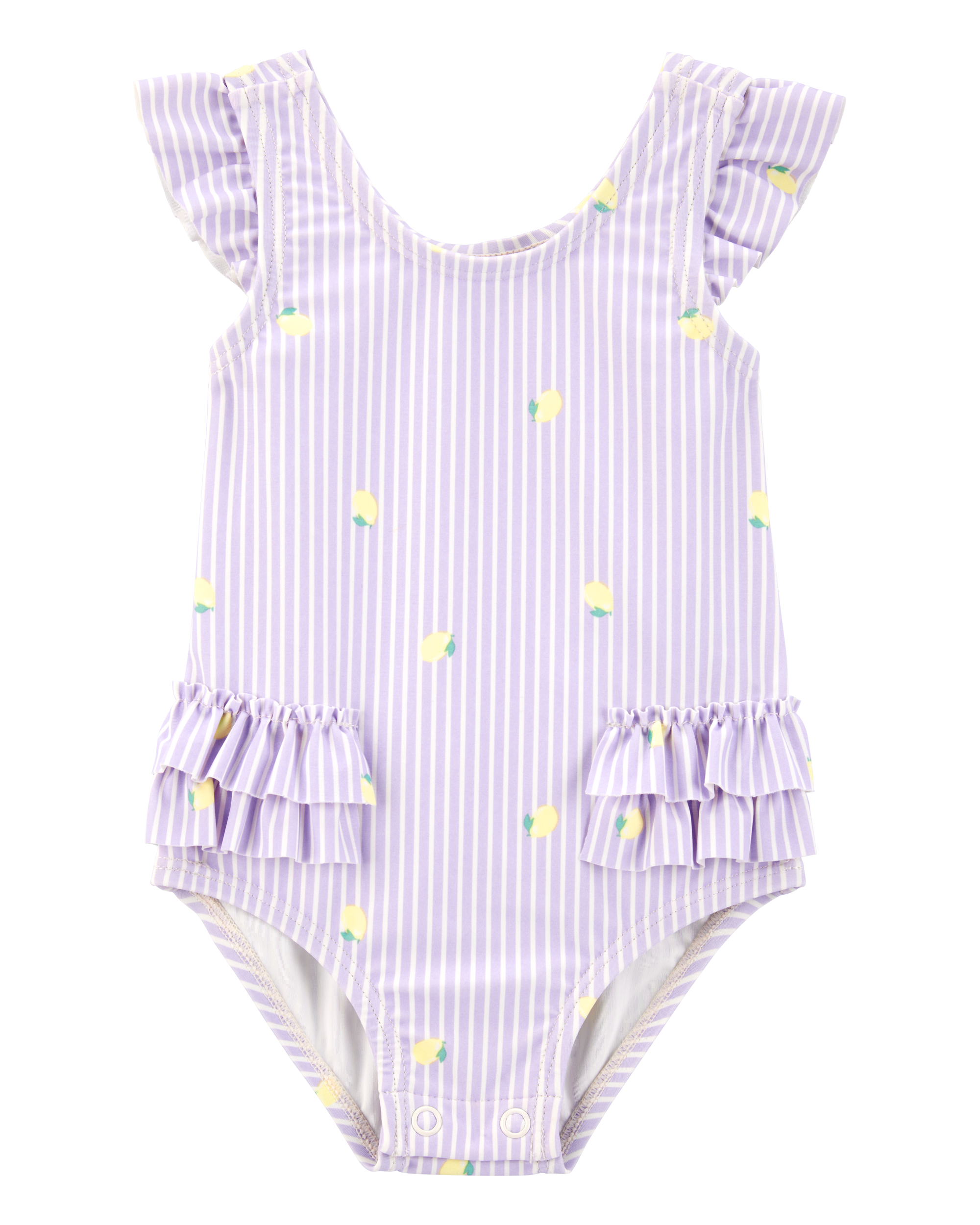 Baby Girl 1-Piece Striped Lemon Ruffle Swimsuit - Purple