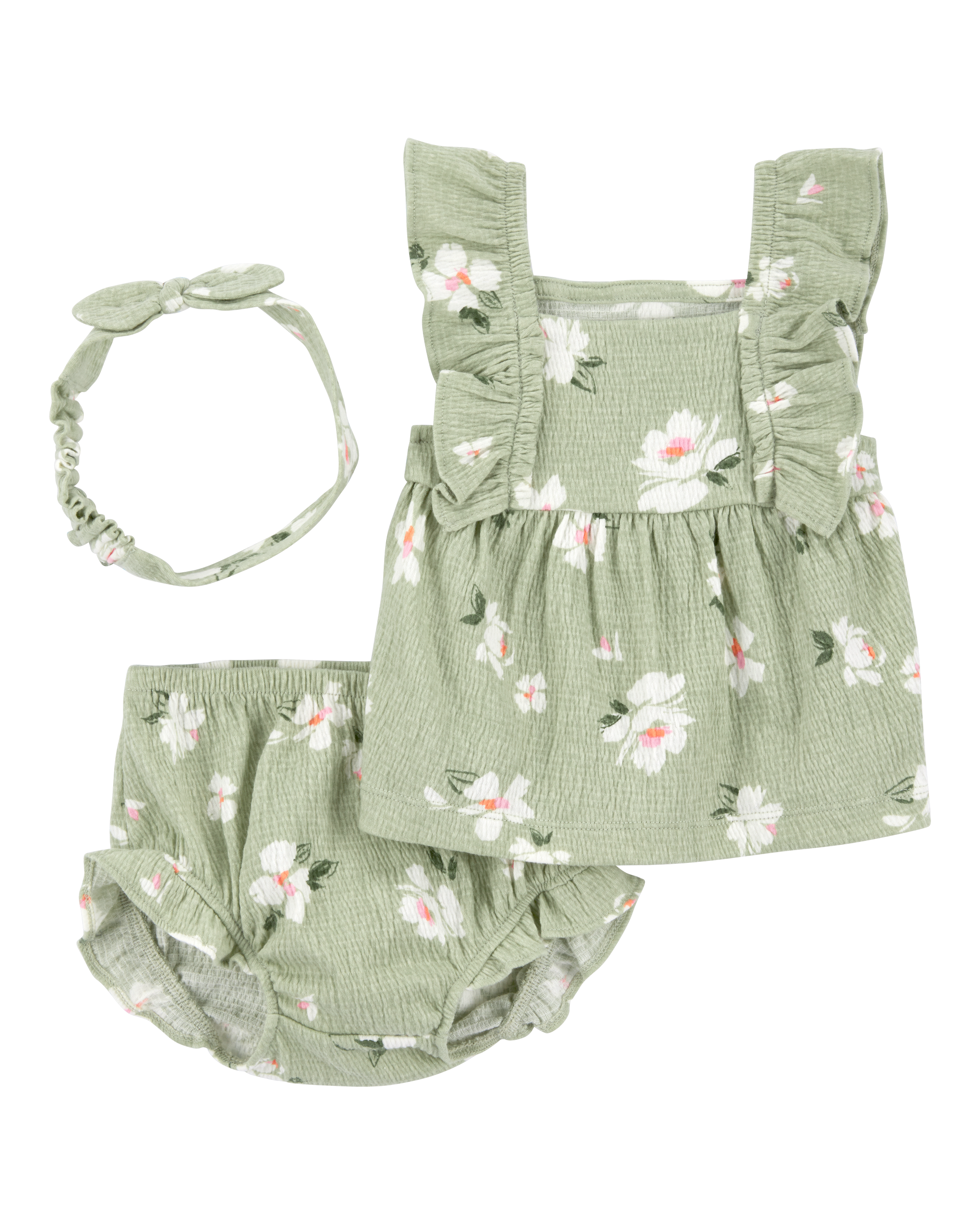 Baby Girl 3-Piece Floral Gauze Outfit Set - Green