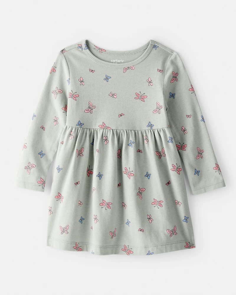 Baby Girl Butterfly Long-Sleeve Knit Dress - Green