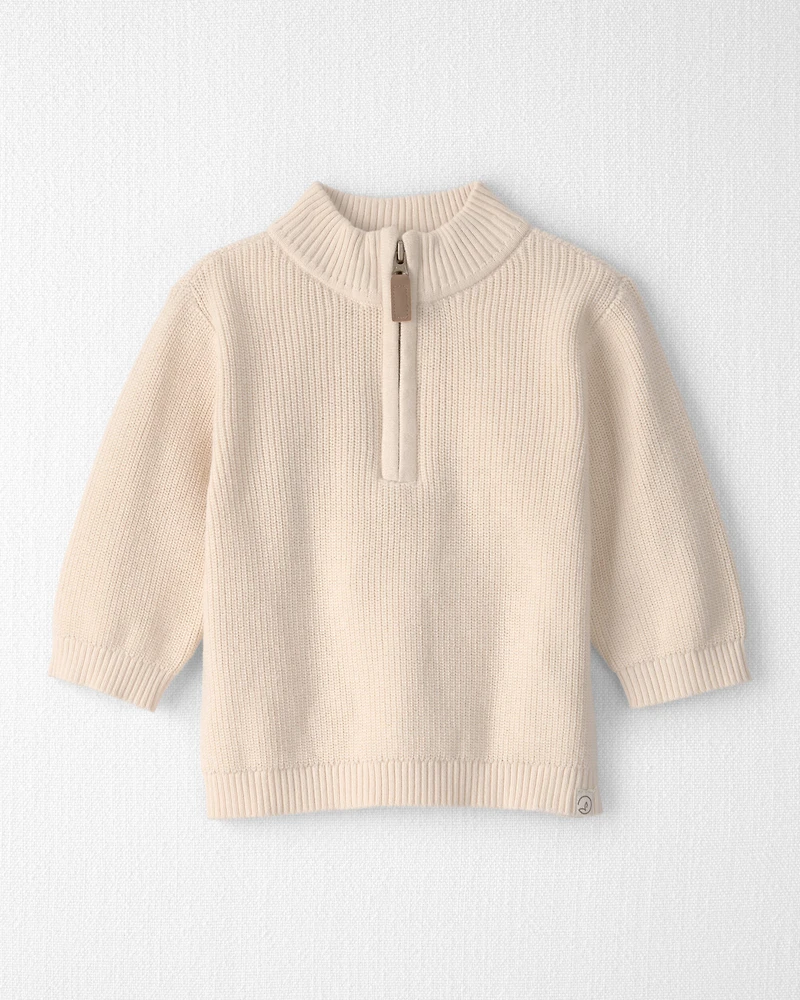 Made with certified organic cotton, this sweater knit layer keeps them warm through the cooler seasons. The functional quarter zip and mock-neck collar bring easy versatility, while ribbed cuffs and a ribbed hem help hold in coziness. Its neutral design works well for both boys and girls, making it simple to pass from one sibling to the next. A timeless everyday piece for everything from slow mornings at home to crisp days outdoors. Crafted in the purest organic fabrics and sustainable materials, Little Planet is a return to simplicity. Thoughtful essentials and timeless pieces to gift or to hold on to.