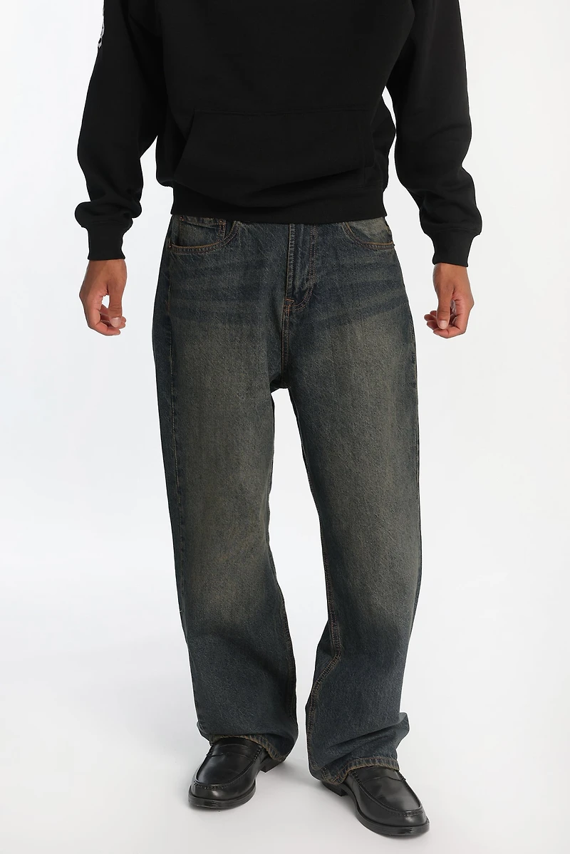 A mid-rise, baggy-leg denim Jeans in a vintage wash that's relaxed from hip to ankle. A straight cut that allows you to move around comfortably all day without feeling restricted. Details• Denim• Rigid denim• Non-stretch• Light wash• Medium whisker detailing• 5 pockets• Zip fly• Imported• Style: 0611-2608 Fit• Sits on waist• Baggy jeans• Approx. Inseam: 32", Rise: 12.5"• Model height: 6'0", wears a size: M Care & Materials• 100% Cotton• Machine wash in cold water. Gentle cycle with like colours. Turn garment inside out while washing. No bleach. Tumble dry low. Low iron on reverse side.