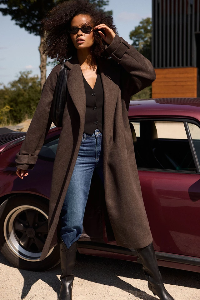 Classic Solid Mock-Neck Wool Coat with Dickey
