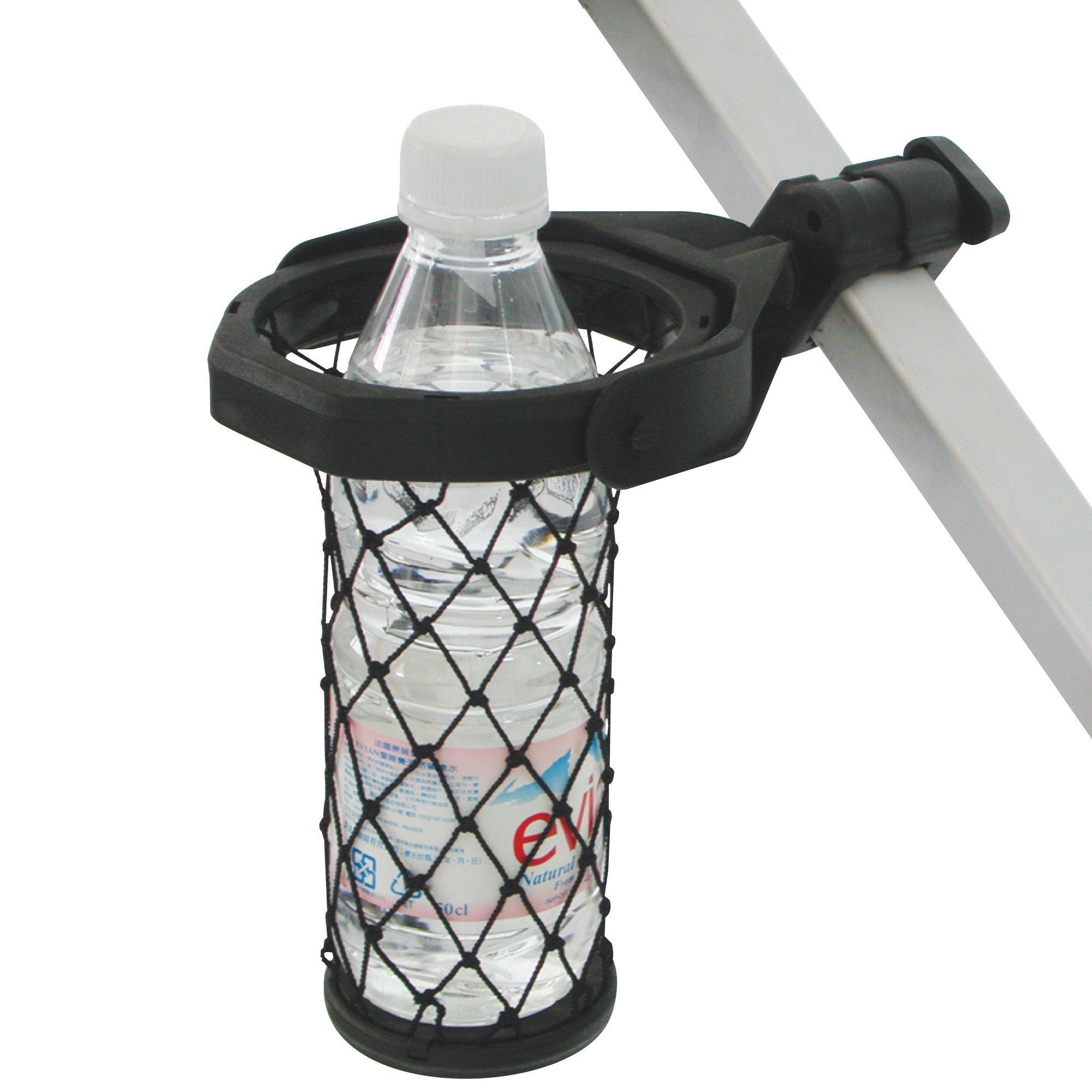 Self levelling system keeps drinks from spilling. Fits golf carts, strollers, beach chairs and more.