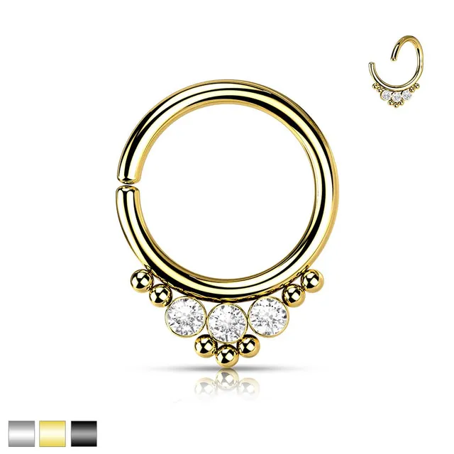 Premium Dot Work + Bezel-set Crystal Hinged Segment Ring 16g