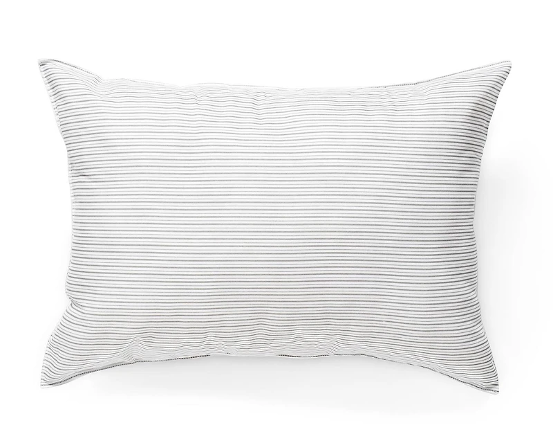 Replace your old lumpy pillows with this two-pack of overstuffed BIG SNOOZE Bed Pillows. These pillows are made from a blend of specially engineered MicroTech Polyester and natural Cotton fibres making them extremely soft, comfortable and easy to care for. Simply toss them into the wash and dry on a low setting! The shell is finished in a classic stripe design and is Ideal for all sleep positions. These pillows are filled with hypoallergenic polyester fibres making them great options for those sensitive to allergens. 2 Pillows are included.