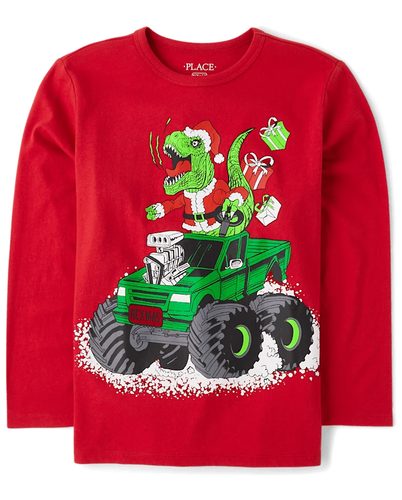 • FEATURES: Christmas dino in truck graphic design, tagless label