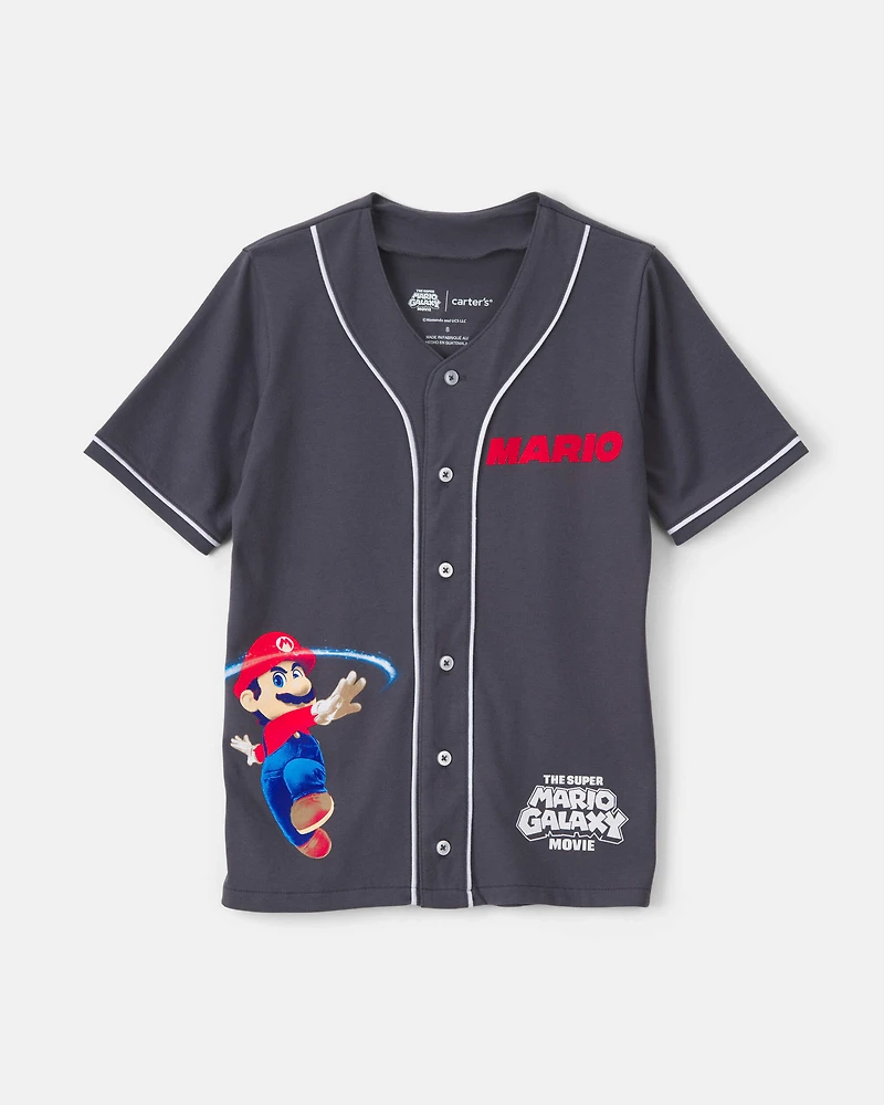 Elevate your child's style with this vibrant baseball jersey featuring the iconic Nintendo Super Mario. Designed for comfort and ease, this jersey makes dressing a breeze, allowing kids to jump into their adventures effortlessly. The playful screenprint design showcases Mario in action, appealing to young fans while ensuring a fashionable look for any occasion. Crafted from soft fabric, it’s perfect for seasonal outings or casual playdates. With its sporty vibe and eye-catching details, this jersey is a must-have for every little gamer’s wardrobe.