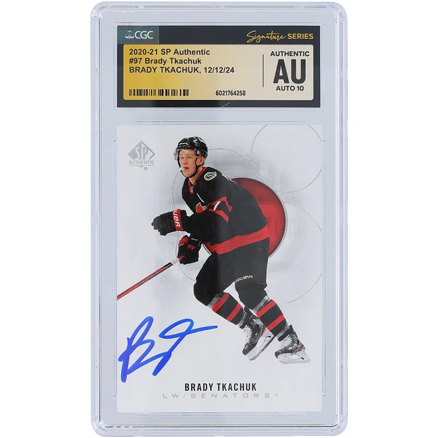 Brady Tkachuk Ottawa Senators Autographed 2020-21 Upper Deck SP Authentic #97 CGC Fanatics Witnessed Authenticated Auto 10 Card