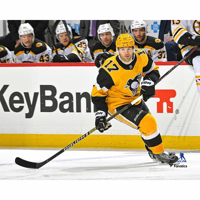 Bryan Rust Pittsburgh Penguins Unsigned Gold Alternate Jersey Skating vs. Boston Bruins Photograph