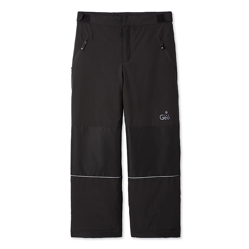 Keep him warm and dry when he's commuting or playing outside with Canadiana x RCGS kids' gender inclusive snow pant. They’re made with a water-repellent finish for those snowy days. These snow pants feature 2 snap-button closures, a zipper fly closure, an adjustable waistband for a secure fit, 2 zippered pockets, an extendable pant length, storm cuffs with gripping elastic, and a reflective trim for added visibility. Style them with the matching snow jacket for a complete set.