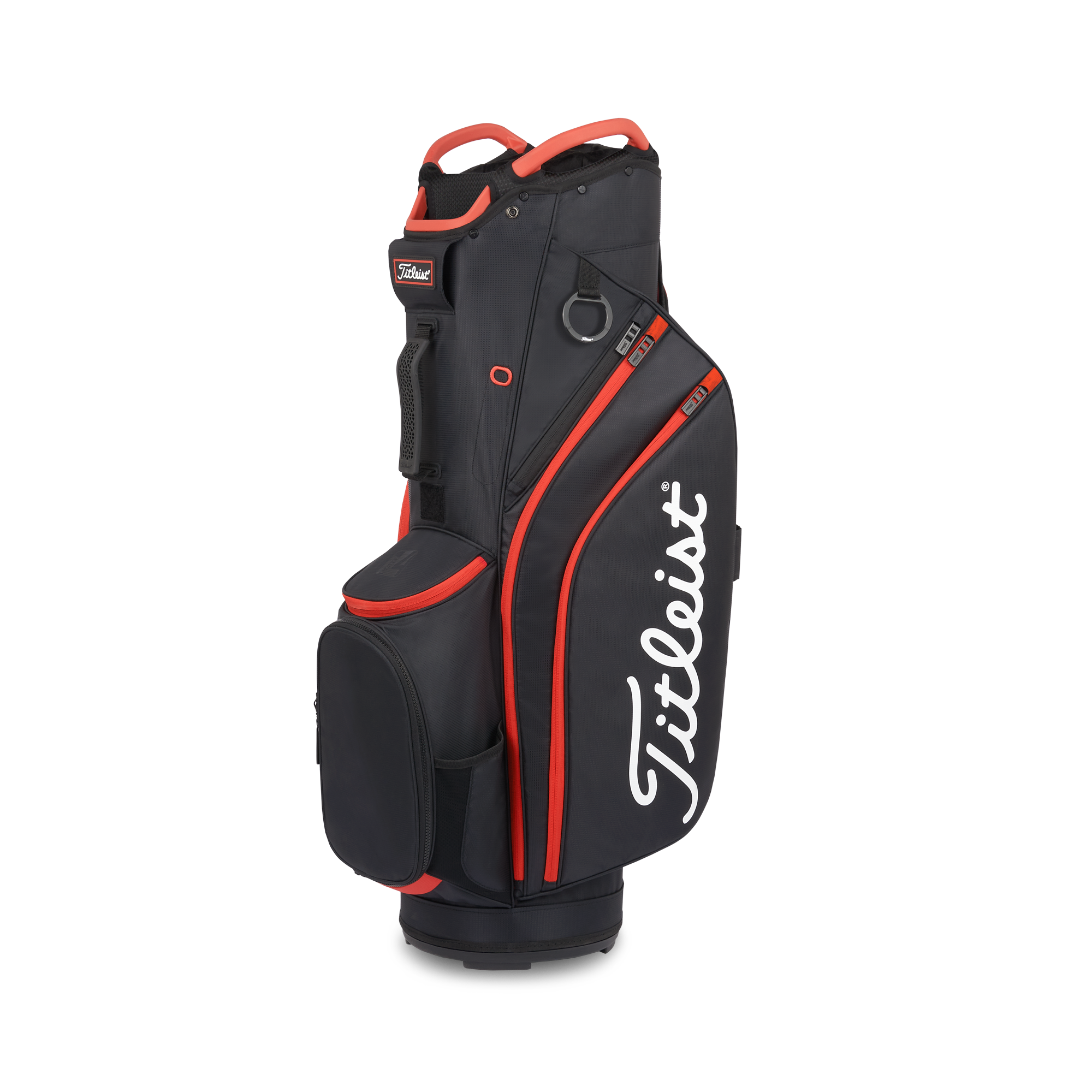 The Cart 14 Bag includes a lightweight, symmetrical design with 10 cart-accessible pockets for improved storage and convenience on the golf course.