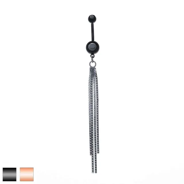 Bezel-Set Pearl Chain Navel Dangle 14g