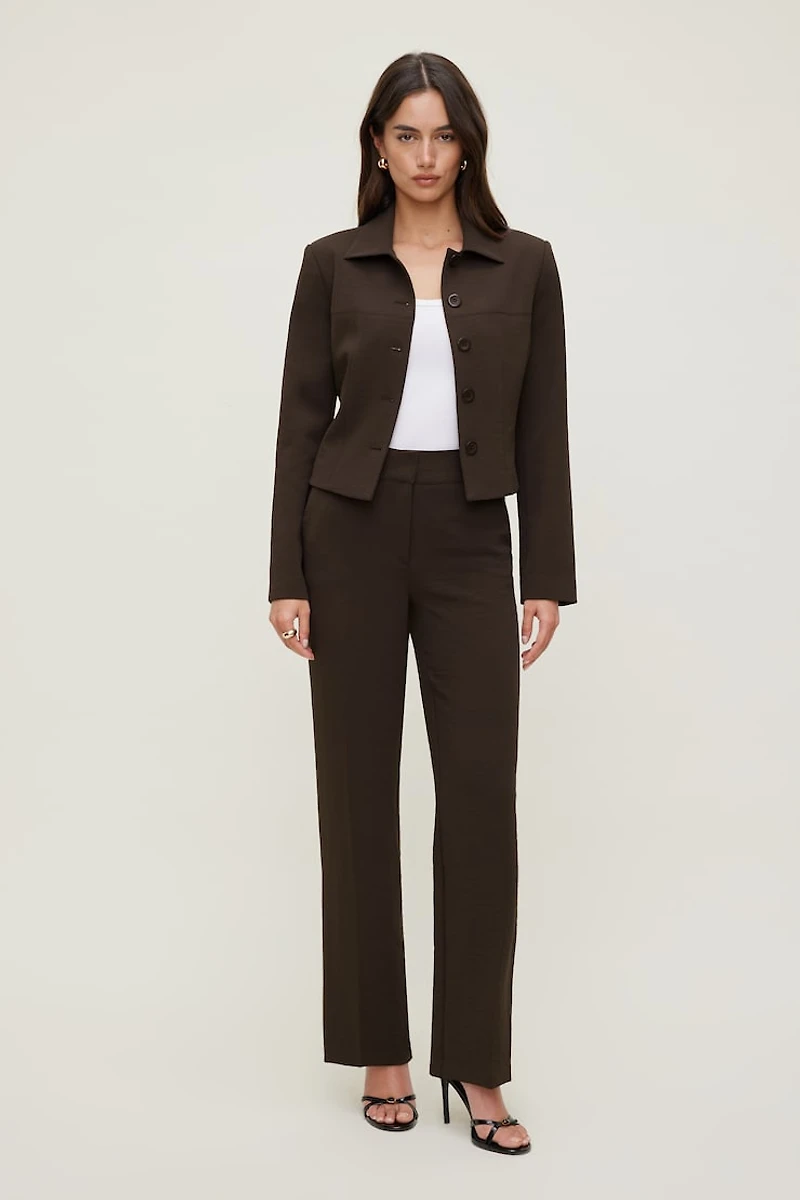 This blazer is made from Airflow—our flowy, heavyweight crepe fabric with a subtle crinkle and a cool handfeel. It's designed for a fitted silhouette with a short hem to keep things playful. Wear it with a matching
