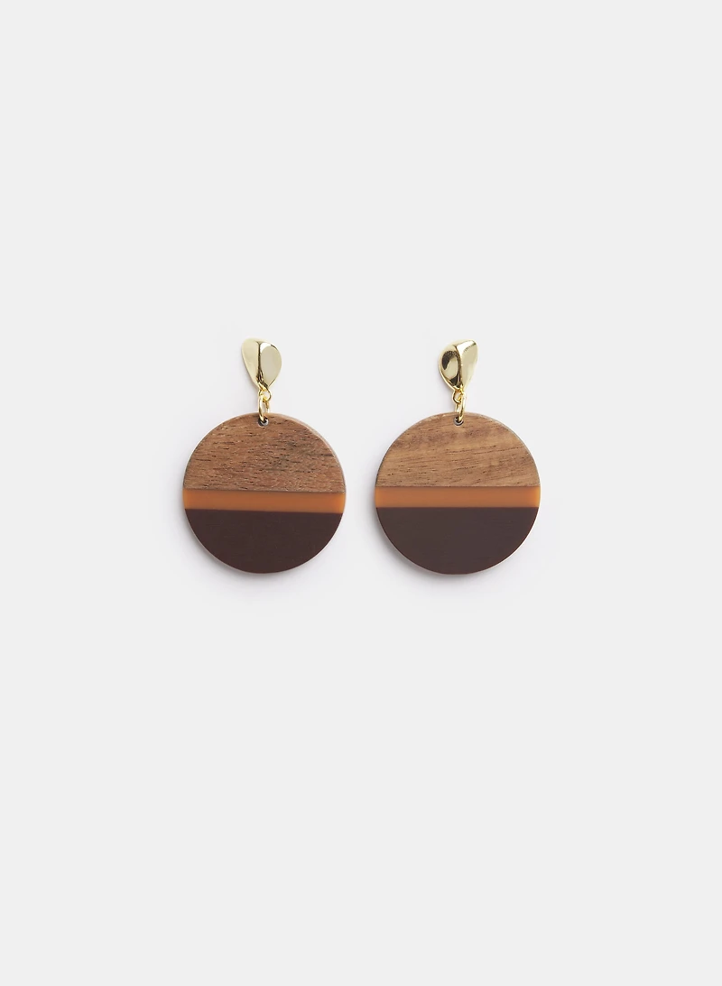 Our circular wood grain earrings offer a down-to-earth design, perfect for enhancing your style with a handcrafted touch.
