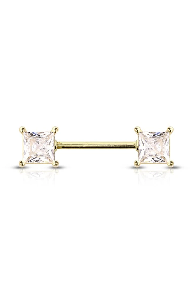 Claw-Set Princess Cut Crystal Nipple Barbell 14g