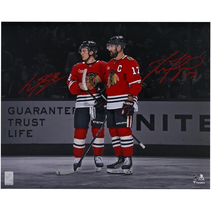 Connor Bedard & Nick Foligno Chicago Blackhawks Autographed 16" x 20" Red Jersey Spotlight Photograph in Coquitlam, BC