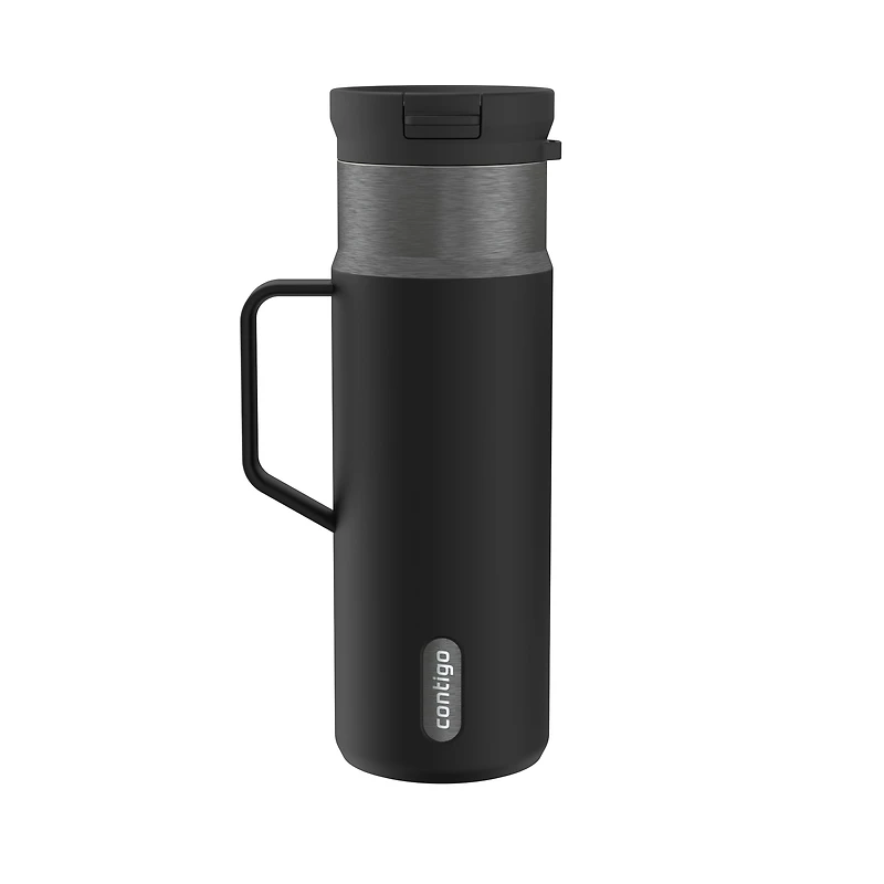Easy to sip, hard to spill. The insulated, leakproof SnapSeal bottle is designed to keep your drink secure wherever the day takes you. Simply click the SnapSeal tab up to sip, then press it back down to lock out leaks. Prefer to drink with a straw? Insert one into the AutoClose opening and sip with ease. When you’re done, remove the straw and the opening seals shut to stop spills. Drinks stay hot or cold for hours thanks to vacuum-insulated stainless steel, and a built-in handle makes carrying comfortable. A soft pad on the base protects surfaces and keeps the bottle steady wherever you set it down. BPA- and lead-free materials ensure peace of mind with every sip, while the dishwasher-safe body and lid make cleanup effortless. Sophisticated design seals the deal: with premium metallic finishes and a refined silhouette, the Contigo SnapSeal bottle adds elevated style to your daily routine.