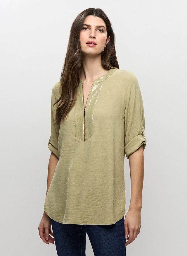 Petite Long Sleeve Mini Sequin V-Neck Tunic