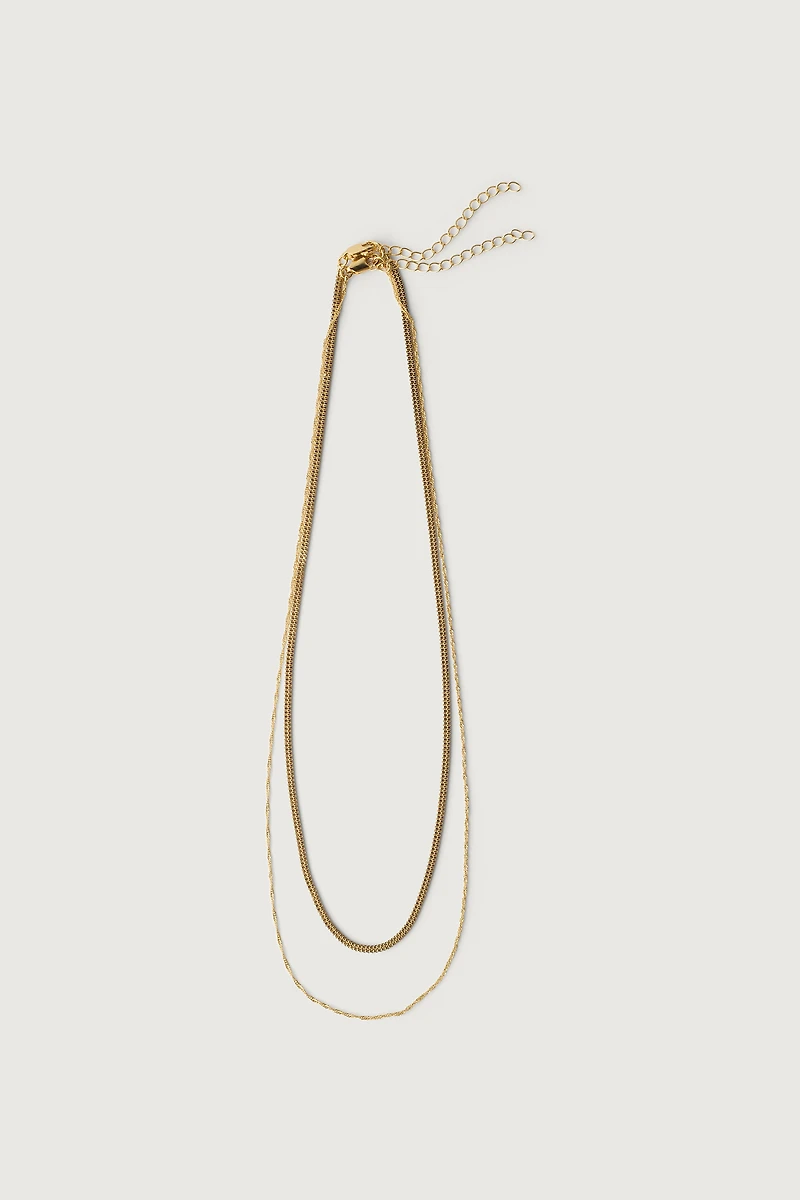 This double chain necklace features a cube chain and twist chain. Wear yours with any of your favorite looks.