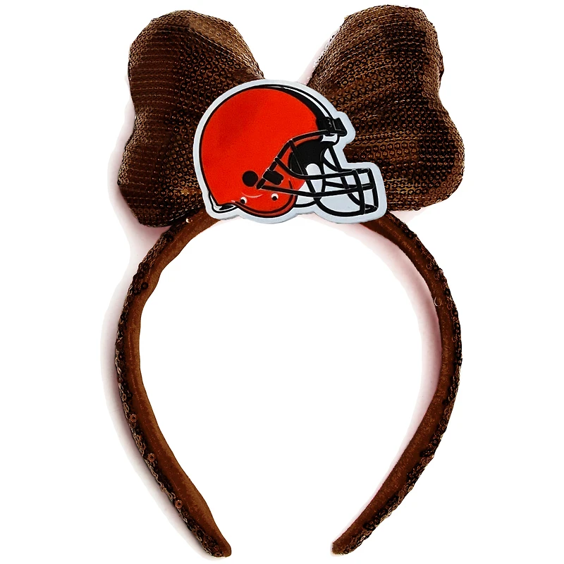 Add a unique finish to any game day look with this Cleveland Browns Team headband. This headband from Cuce features sequined fabric and a fun bow on top. Make any outfit perfect for cheering the Cleveland Browns to victory with this headband.