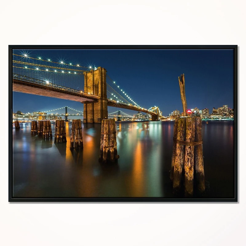 Design Art Lit up Brooklyn Bridge by Night Framed Canvas Art Print in Coquitlam, BC