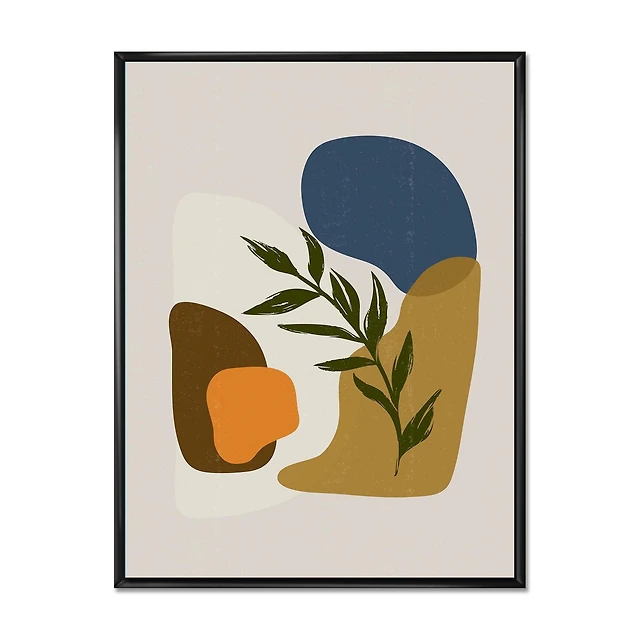 Designart Botanical Minimalist Shapes With Green Leaf FLOAT FRAME WALL ART