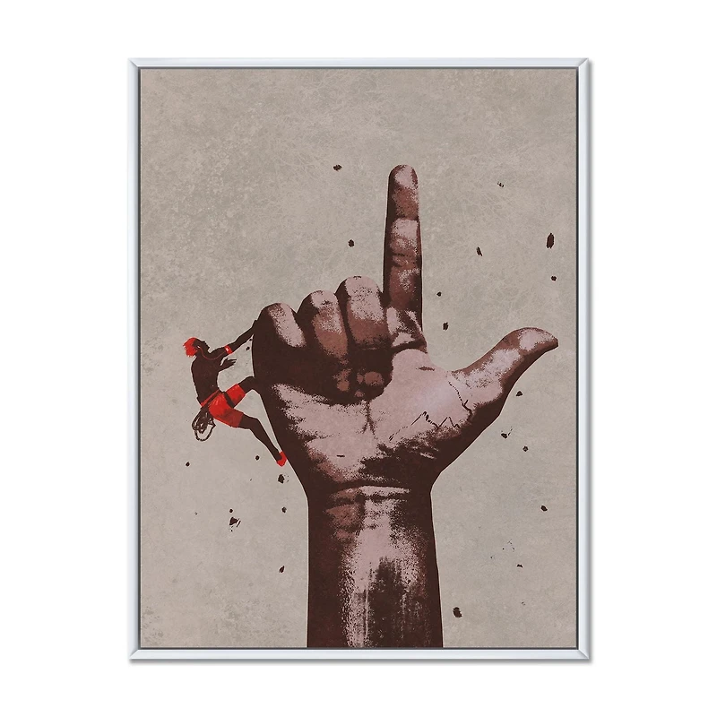 Designart Finger Pointing Up Sign With Climber FLOAT FRAME WALL ART
