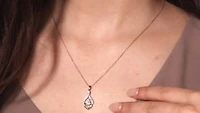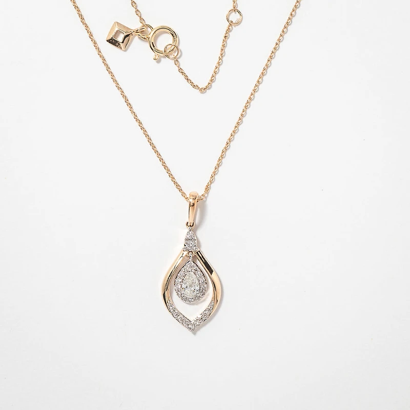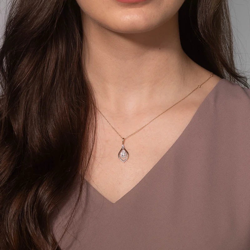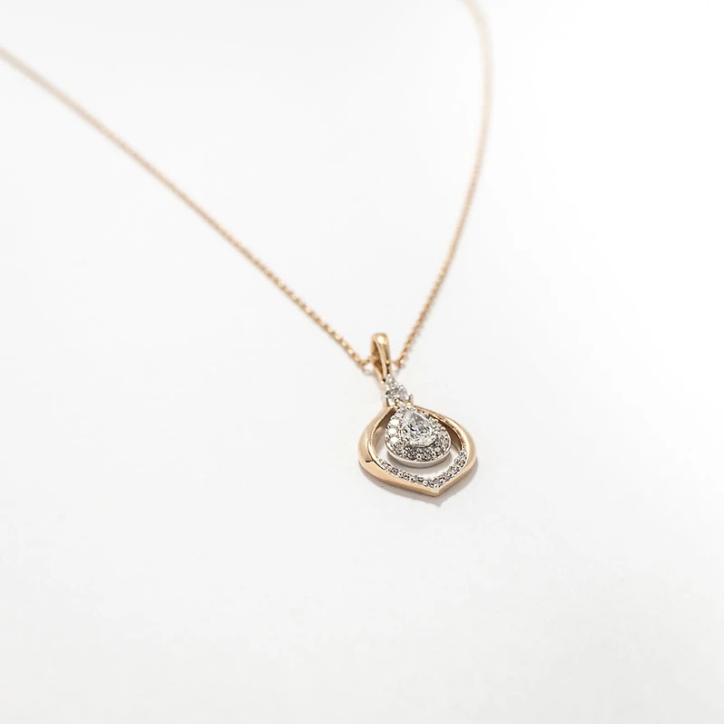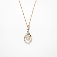 This outstanding diamond cluster necklace captures grace and beauty in every detail. Finely crafted in 10K yellow and white gold, it feature a 0.20 pear shaped diamond at its centre. An additional 29 accent diamonds are adorned on this fabulous design. Whether you're attending a special event, or simply looking to add