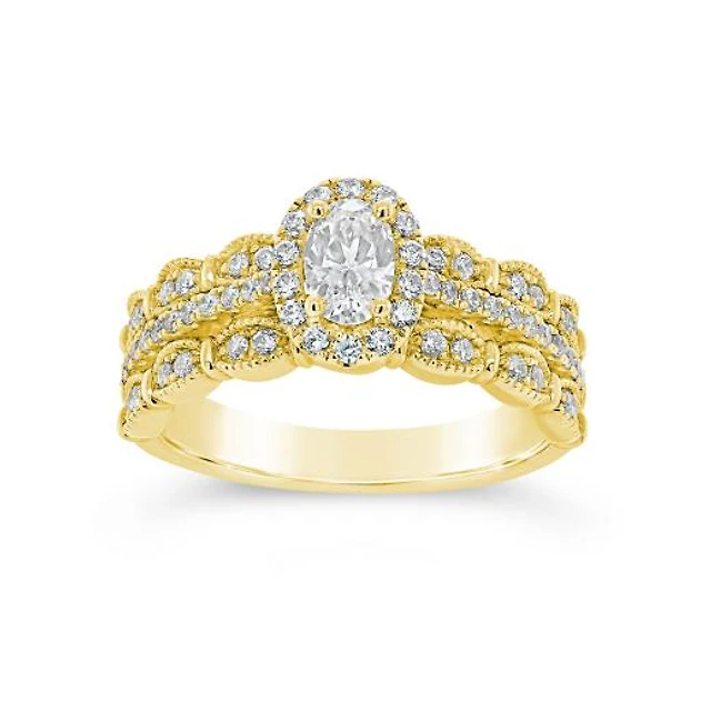 Diamond Revelations 14K Yellow Gold 0.99CTW Oval Diamond Halo Bridal Ring