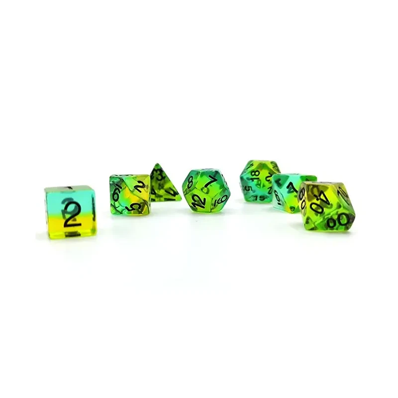 Full set of 7 dice Balanced, durable dice build Modern Mojito design finish Portable and versatile use