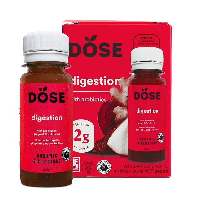 DOSE Digestion ginger & probiotics shot, 4 Pack, 4 x 60 ml