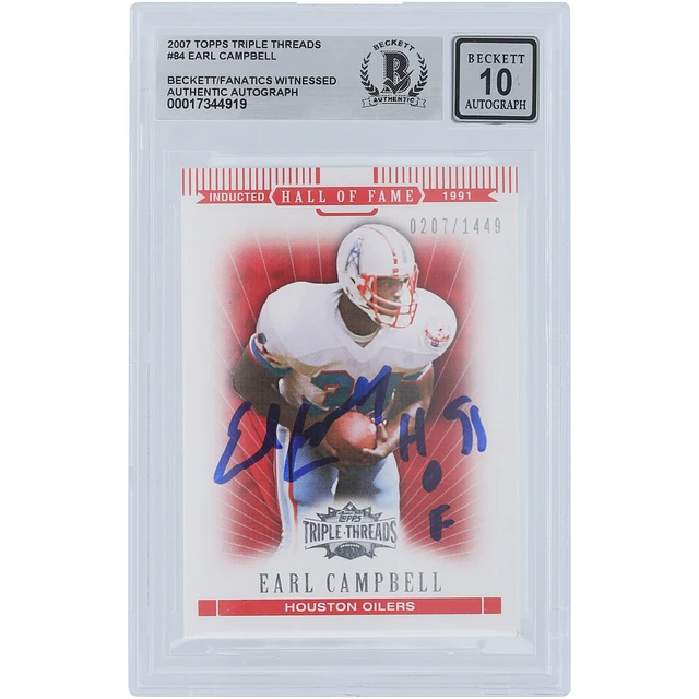 Earl Campbell Houston Oilers Autographed 2007 Topps Triple Threads #84 #/1449 Beckett Fanatics Witnessed Authenticated 10 Card