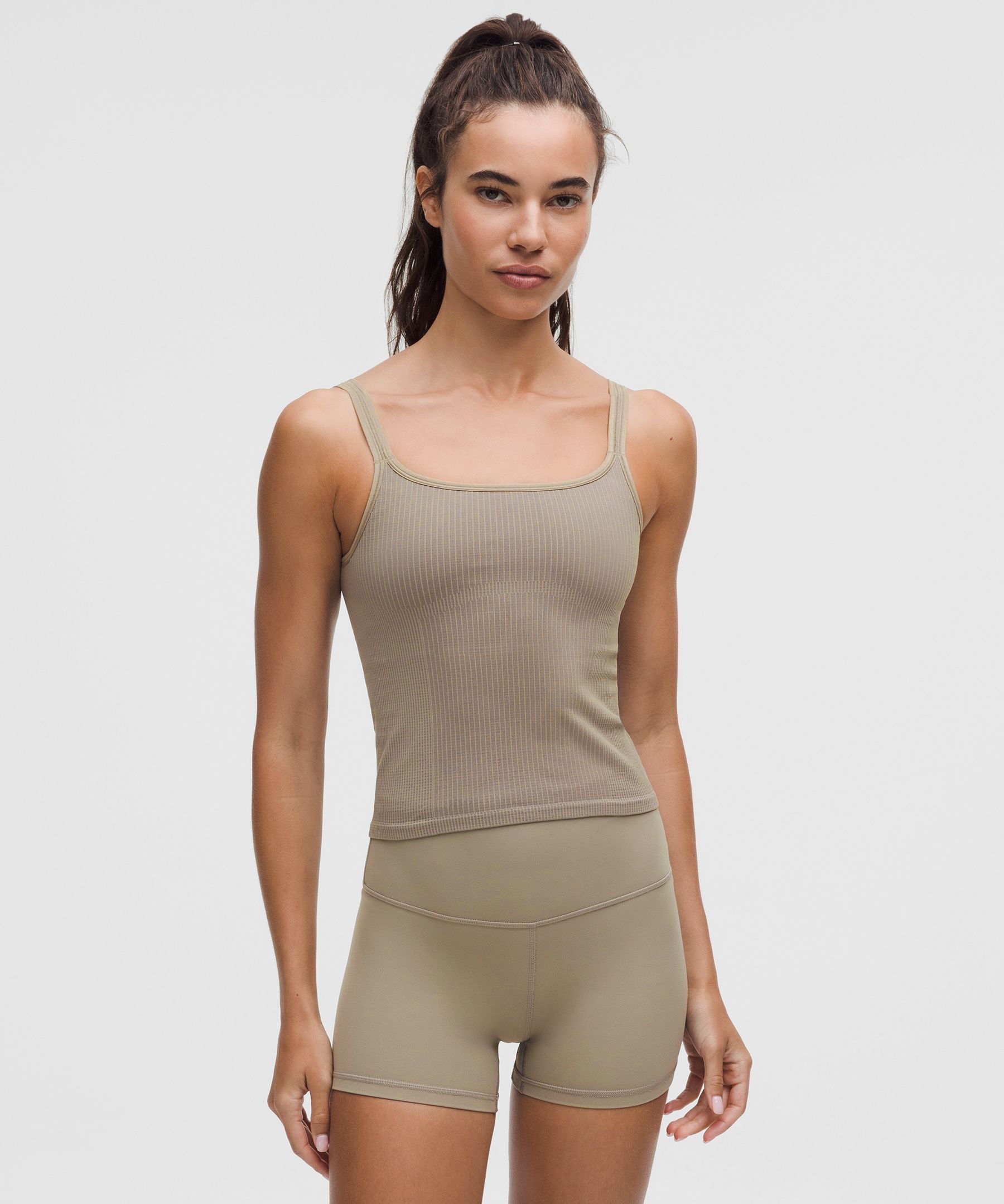 Get the scoop. This one-and-done yoga tank top has that smooth-fit and built-in support you love, with a scoop neck and back.
