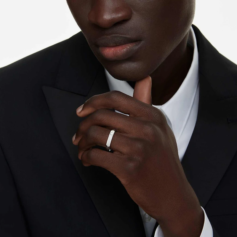 Signifying an everlasting commitment, this Eternity ring is crafted for timeless men's styling. The facetted band is made in 14K white gold and features a single laboratory grown diamond totalling 0.05 carat. Expressing high brilliance and sophistication, it’s the perfect piece of jewellery for a men's wedding ring or a special gift. This jewellery is IGI (International Gemological Institute) certified and is part of the Eternity collection.