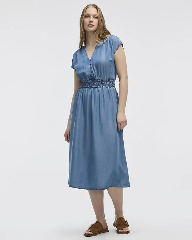 V-Neck Midi Sheath Dress