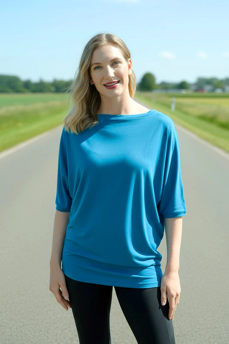 Introducing the Fannie Bamboo-Blend Top (Reversible) , a timeless favorite in our bamboo collection, carried for over 10 years and updated with new colors frequently. This versatile piece can be styled as a flowy top, chic dress, or unique off-shoulder look. Perfect for pairing with leggings, skirts, or jeans, it effortlessly transitions through the seasons. Universally flattering, you can size down to wear it as a dress, and it’s even maternity-friendly. Crafted from ultra-soft bamboo fabric with a loose, comfortable cut, it remains one of our most popular items. The length can be adjusted for a longer or shorter style, adding even more versatility. All models wear size XS, and the model is 5'8"/175cm with a 27" waist, wearing a size X-Small. Ideal for effortless style and all-day comfort, the Fannie Bamboo-Blend Top is a must-have piece in your wardrobe.