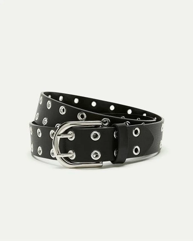 Faux-Leather Grommet Belt