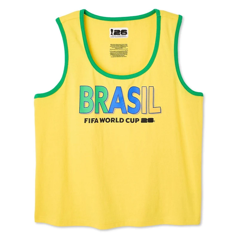 FIFA women’s World Cup 2026 Brazil tank top reps your favourite team in a vibrant, sporty way. It's made of jersey knit for a soft comfy feel that works for game days and beyond. The design features a scoop neck, a sleeveless cut, a front graphic print, a contrasting trim for a sporty finish, and a straight hem. Wear it with denim shorts, joggers, or jeans for an effortless outfit.