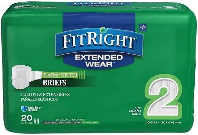 FitRight Stretch Extended Wear Night Briefs, Size 2, For Waist 40"-70", Bag of 20
