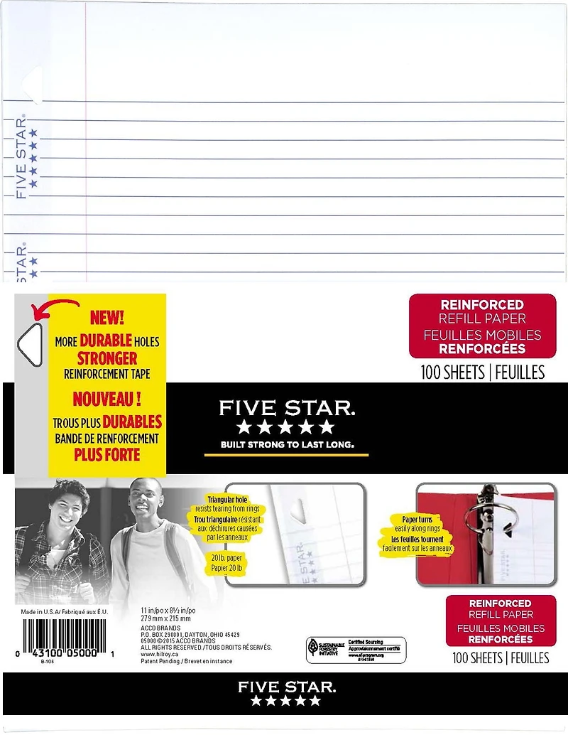 Five Star Reinforced Refill Paper, Fits into standard 3-ring binder