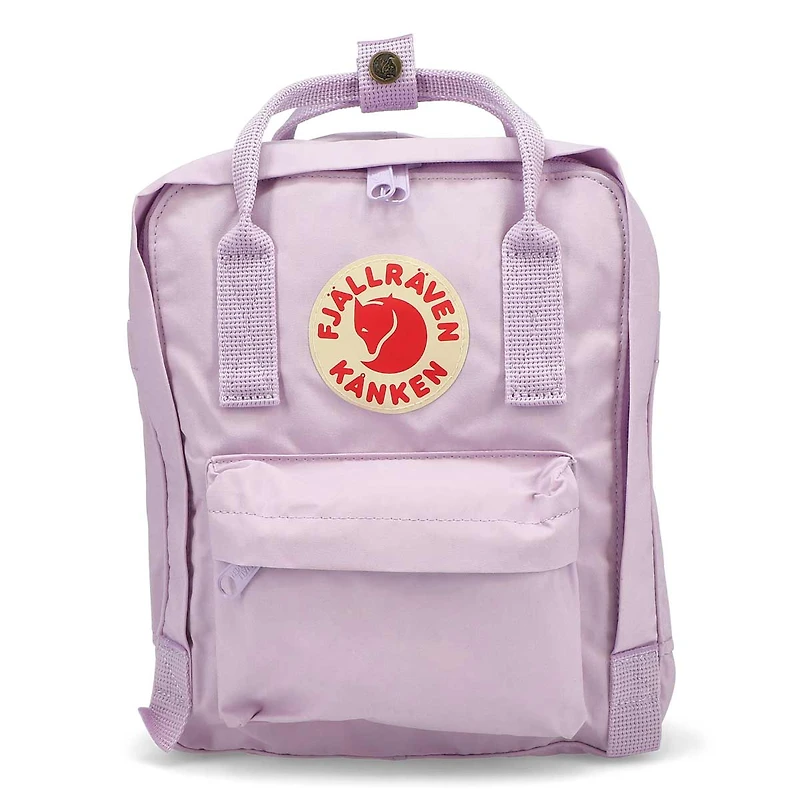 Simple, stylish and functional, the Kanken Mini is suitable for smaller children and even adults who want to have a small backpack. Perfect for a change of clothes at kindergarten, a packed lunch for an outing or as a convenient everyday bag for a wallet, water bottle and piece of fruit or the like. Made out of durable, lightweight, water and dirt resistant Vinylon, the Kanken Mini has a main compartment with a large opening, two side pockets, a zippered pocket in the front, handle at the top, narrow, supple shoulder straps and logo that doubles as a reflector.