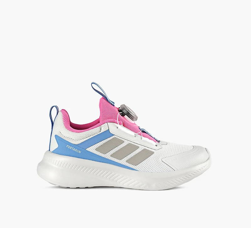 Built for kids on the move, the Fortarun 4.0 delivers lightweight comfort and reliable support for every adventure. Featuring a breathable mesh upper that promotes airflow and Cloudfoam cushioning for soft, responsive steps, these shoes keep up with active days. The flexible outsole ensures natural movement, while the easy lace-up design offers a secure fit for school, play, and beyond.