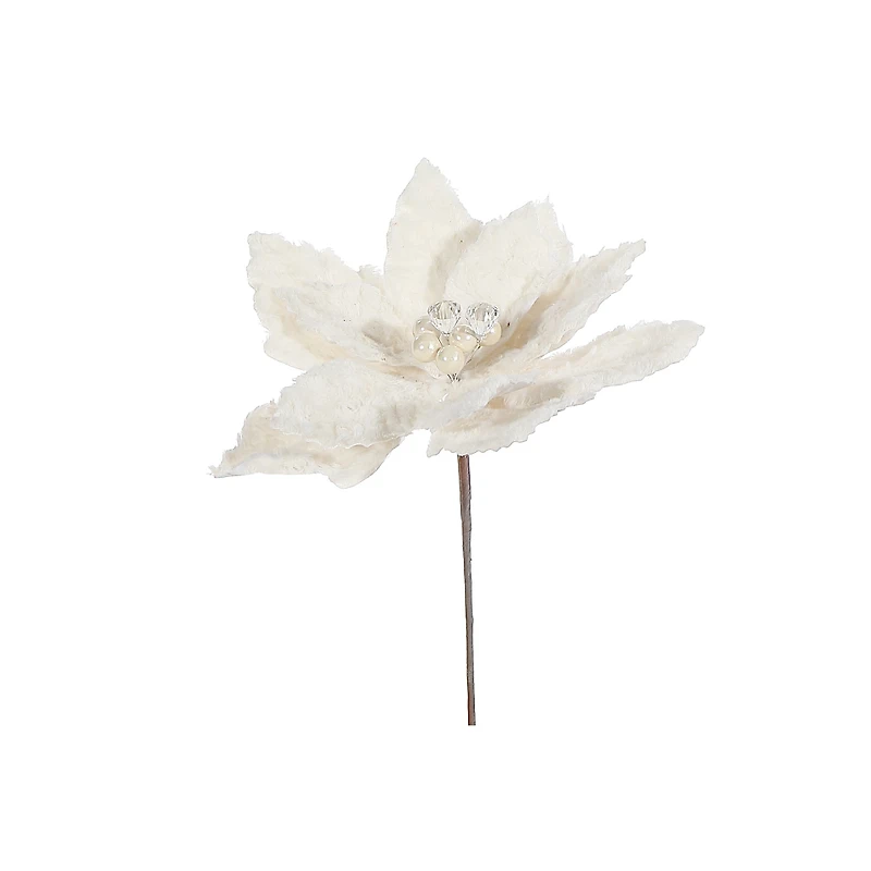 Furry Poinsettia Pick (Ivory) - Set of 6