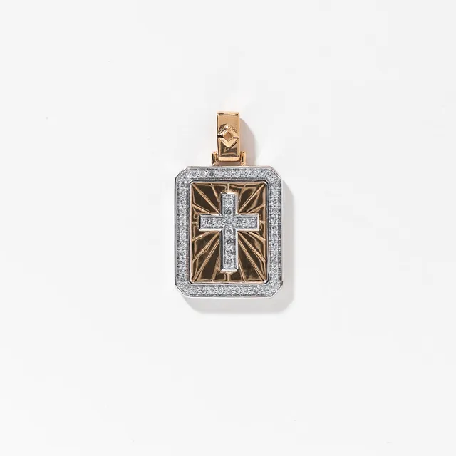 Gents Diamond Cross Pendant in 10K Yellow and White Gold (0.50 ct tw)