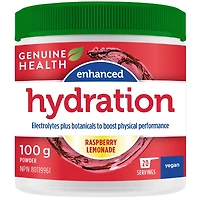 GENUINE HEALTH - Enhanced Hydration - 100 Gram(s) Empower yourself with Enhanced Hydration! Each scoop is filled with powerful electrolytes & plant-based antioxidants, to help quench your muscles and power through each workout from start to finish with optimal performance. We’ve also included a boost of Vitamin D3 & Zinc naturally sourced from guava leaf, to promote lean muscle building and provide immune protection.Our formula has been designed to enhance your experience and the outcome of staying properly hydrated. Filled with natural sweetness and invigorating ingredients, every serving promotes a healthy electrolyte balance to support optimal muscle function.Optimal recovery with Melorun®Our formula supports optimal workout recovery with the power of Melorun®, an all-natural melon juice concentrate rich in superoxide dismutase (SOD). SOD is the antioxidant enzyme that lowers oxidative stress and inflammation in the body, while also preventing muscle and joint damage, as well as physical and mental fatigue.This is especially needed if you find yourself getting sick after workouts or if you're simply looking to improve your natural immune response any time of year.All-natural refreshment.Each 100g (20 servings) container is free from dairy and artificial colours and sweeteners and it's 100% vegan-friendly.INGREDIENTSFERMENTED BEETROOT POWDER, GUAVA (PSIDIUM GUAJAVA) LEAF STD. EXTRACT (4% ZINC), MELORUNM (CURCUMIS MELO l.) FRUIT JUICE CONCENTRATE, MAGNESIUM (MAGNESIUM OXIDE), POTASSIUM (POTASSIUM CITRATE), CALCIUM (CALCIUM CITRATE), VITASHINE VEGAN VITAMIN D3 (CHOLECALCIFEROL), SODIUM CHLORIDE, SILICON DIOXIDE, MALIC ACID, CITRIC ACID, STEVIA, ACACIA GUM, NATURAL FLAVORS.DIRECTIONS & USE1 scoop of Enhanced Hydration into water or a smoothie before you workout.