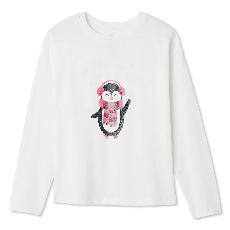 George girls' graphic long sleeve tee adds a fun twist to her everyday style. It’s made of jersey knit in 100% cotton to keep her comfy for school or weekend outings. The tee features a classic crew neckline, long sleeves, dropped shoulders, and a cool front graphic print. Finished with a straight hem, it’s easy to pair with jeans or leggings for a look that she’ll reach for on repeat.