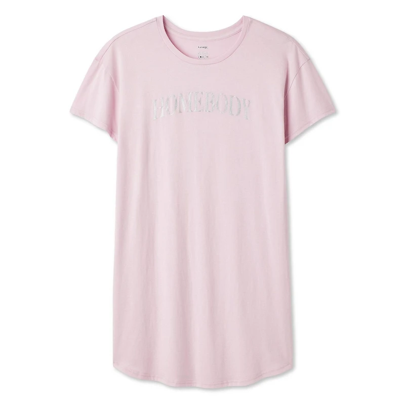 Relaxation meets everyday ease with George women’s crew-neck nightshirt. Made of soft jersey knit, it’s perfect for lounging or winding down after a long day. The design features a classic crew neck, short sleeves, dropped shoulders for a relaxed fit, and a front graphic print for a playful aesthetic. A curved hem finishes the look, making it an easy, go-to essential for restful comfort.