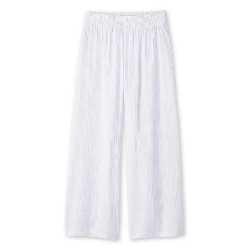 Airy construction meets effortless comfort in George women’s gauze cover-up pant. The double gauze has a soft, breathable feel that’s great for those sunny days by the water. They feature an elasticized pull-on waistband that keeps the fit easy whether you're walking along the boardwalk or lounging. The wide legs create a relaxed, flowing silhouette that layers perfectly over swimwear. Pair it with any cover-up top for a complete look.