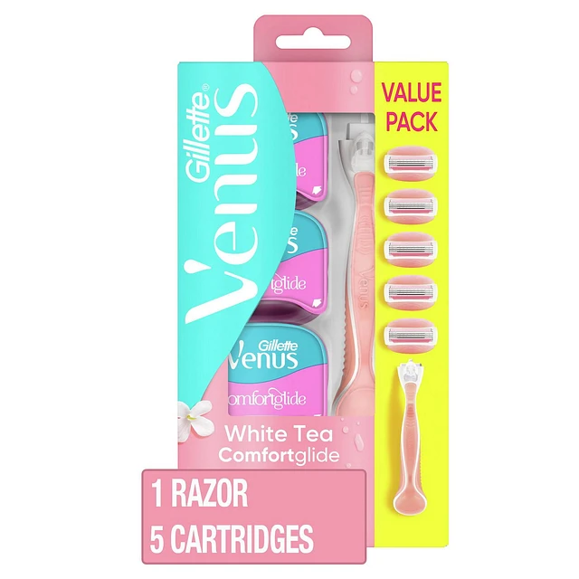 Gillette Venus Comfortglide White Tea Women's Razor - 1 Handle + 5 Refill, 0MX