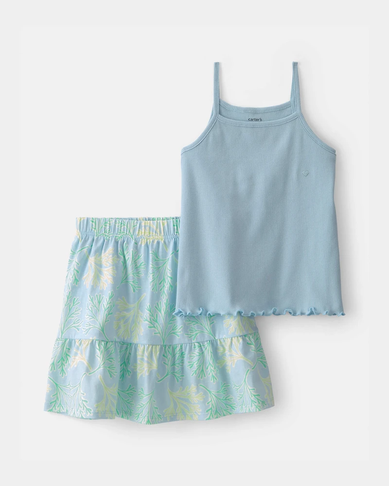 Girls 2-Piece Tank Top & Tropical Floral  Skirt Set - Blue